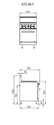 4 BURNER WITH OVEN W610 X D790 X H1165 | COOKRITE 1 ATO-4B-F-LPG
