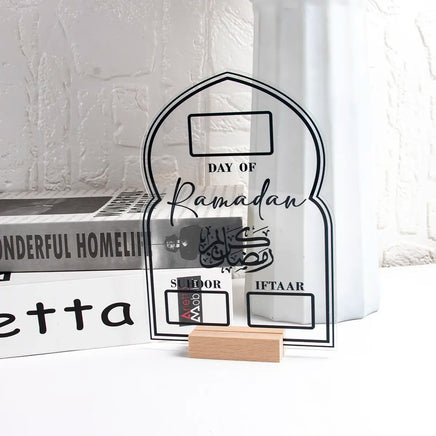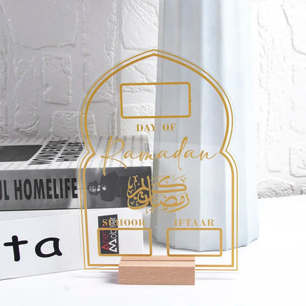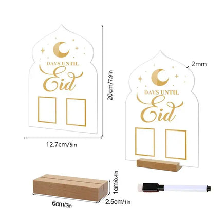 Count down the days until Eid with our reusable acrylic Ramadan calendar. Crafted with a wooden base, this calendar allows you to mark each day of Ramadan and Eid with joy and anticipation.
