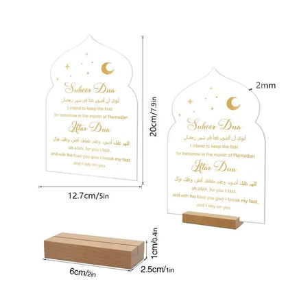 Celebrate Ramadan and Eid in style with our acrylic calendar. Featuring Mubarak Eid ornaments and a decorative design, this calendar adds a festive touch to your home decor while helping you keep track of Suhoor and Iftaar times.
