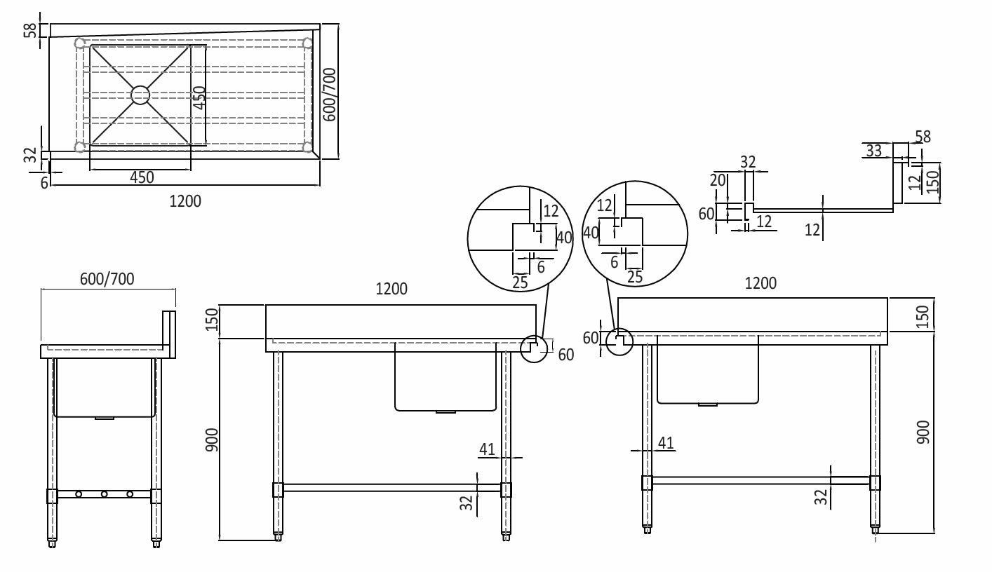 304 grade, 1.2mm thick stainless steel top